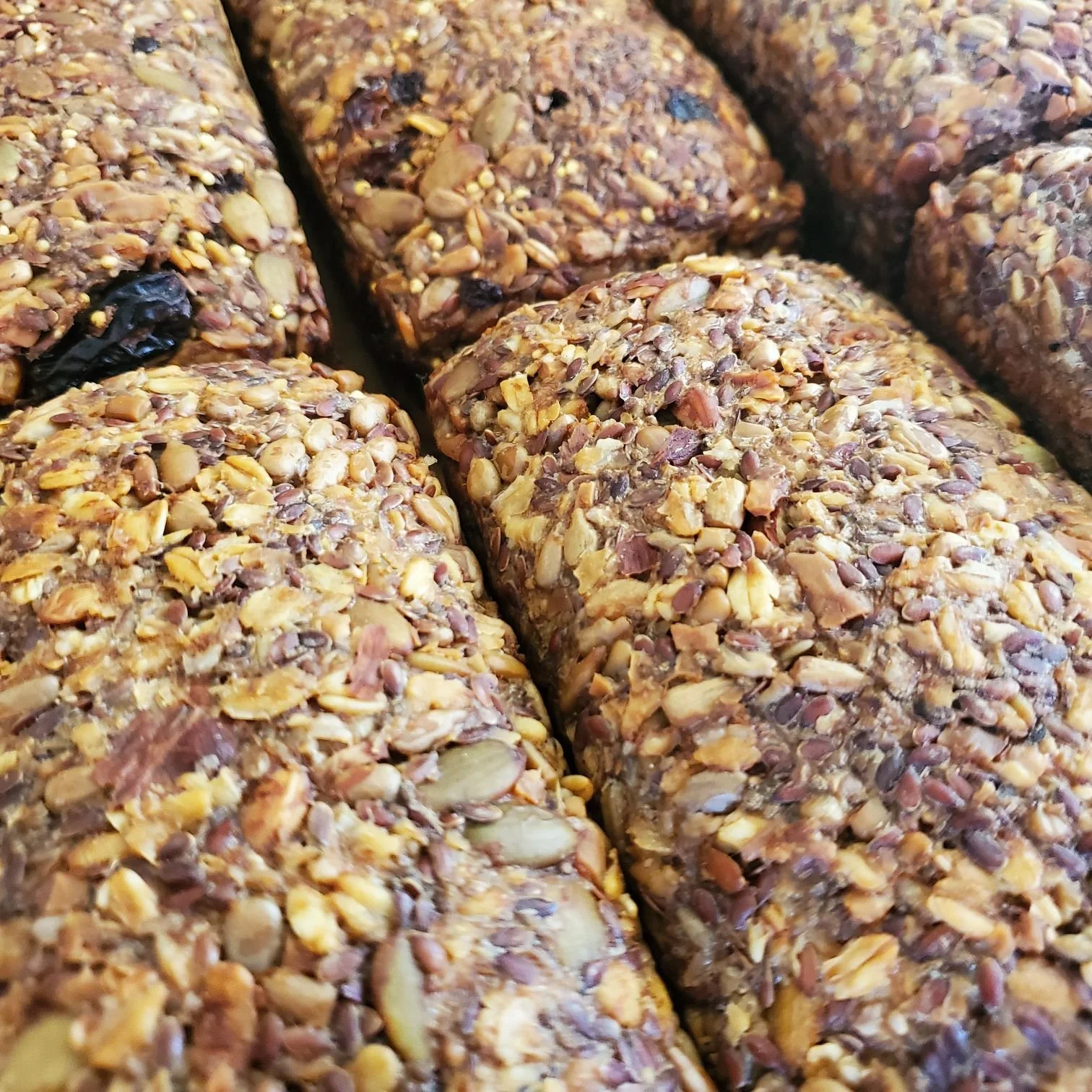 Seeds, fruits, and nuts, Oh My! I love mornings! They’re sweet, wholesome, full of energy and promise for a glorious day. Like the WTF? Loaf, this bread traces its inspiration to a 2013 blog post by My New Roots hailing “the Life Changing Loaf of Bread,” and Josey Baker’s 2014 recipe for “Adventure Bread.” The AM! is a sweeter sister of the WTF? Loaf, embodying a spirit of awesomeness found in new beginnings. So, go ahead, begin again, and have another slice.